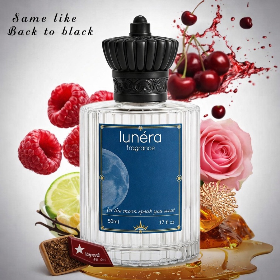 عطر Back to Black داكن، إدماني، وحسيّ بدون اعتذار. يبدأ بطبقة عسل ذهبي غني فوق توت العليق العصيري ولمسة حمضية مشرقة. سريعًا ما تظهر نوتة تبغ عميقة — دافئة، مدخنة، وحلوة قليلًا — محاطة بلمسات من الكرز والورد الناعم لإحساس فاخر ومترف.