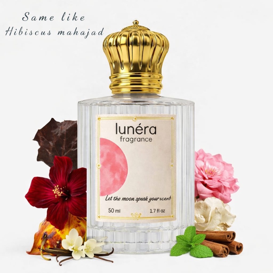 As it unfolds, the heart reveals a lush hibiscus bloom: tangy, velvety, and radiant. Rose adds elegance while a touch of cinnamon brings warmth and subtle spice, creating a luxurious and captivating core.